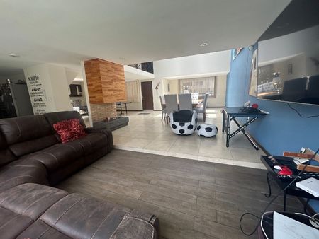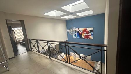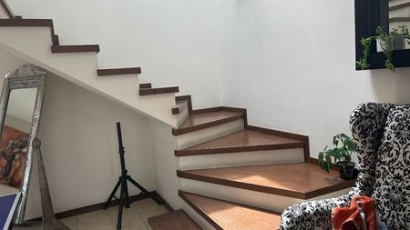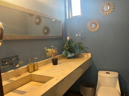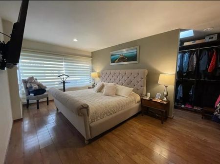 En la planta superior, un family room conecta las habitaciones, cada una equipada con baño propio y vestidor, brindando comodidad y privacidad para todos los miembros de la familia. La casa cuenta con 3 espacios de estacionamiento, con capacidad para 2 autos adicionales en la calle.